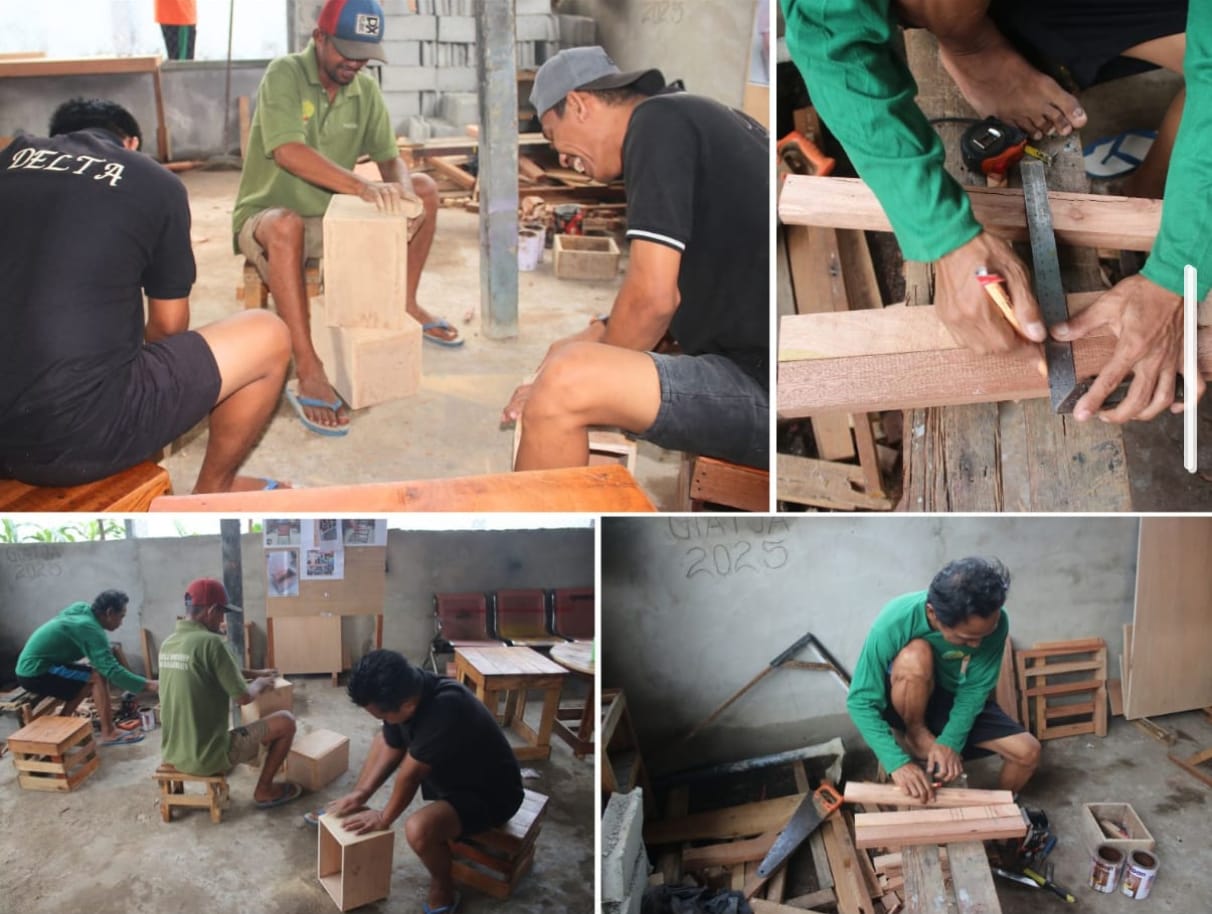 Rujai bersama rekan-rekan WBP lainnya tampak serius mengukur, memotong, hingga merangkai potongan kayu menjadi produk siap pakai. Kegiatan ini merupakan bagian dari program pembinaan kemandirian yang bertujuan membekali warga binaan dengan keterampilan kerja yang dapat dimanfaatkan setelah bebas nanti.