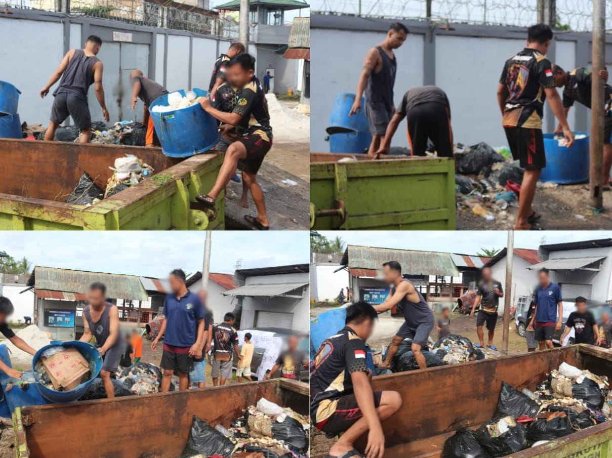 Dalam rangka menjaga kebersihan dan ketertiban lingkungan, Tamping Kebersihan dari setiap blok hunian Lapas Kelas IIA Banjarmasin melaksanakan pembuangan sampah ke area penampungan sementara (TPS) yang telah ditentukan. Kamis (23/10) pagi.