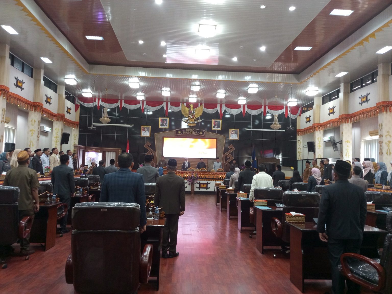 Rapat paripurna dipimpin langsung oleh Ketua DPRD Kota Metro Ria Hartini, dihadiri Walikota H.Bambang Iman Santoso, Wakil I dan II pimpinan DPRD, dan unsur Forkopimda lainnya.