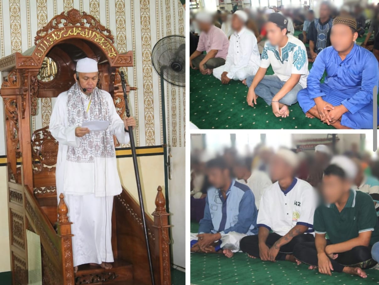 Suasana khusyuk menyelimuti Masjid Baabud Taqwa Lapas Kelas IIA Banjarmasin pada Jumat (18/07), saat ratusan warga binaan melaksanakan ibadah Shalat Jumat. Kali ini, yang bertindak sebagai khatib dan imam adalah Ustadz H. Asfiani Norhasani, Lc., M.H., seorang dai dari Kantor Wilayah Kementerian Agama Kota Banjarmasin.