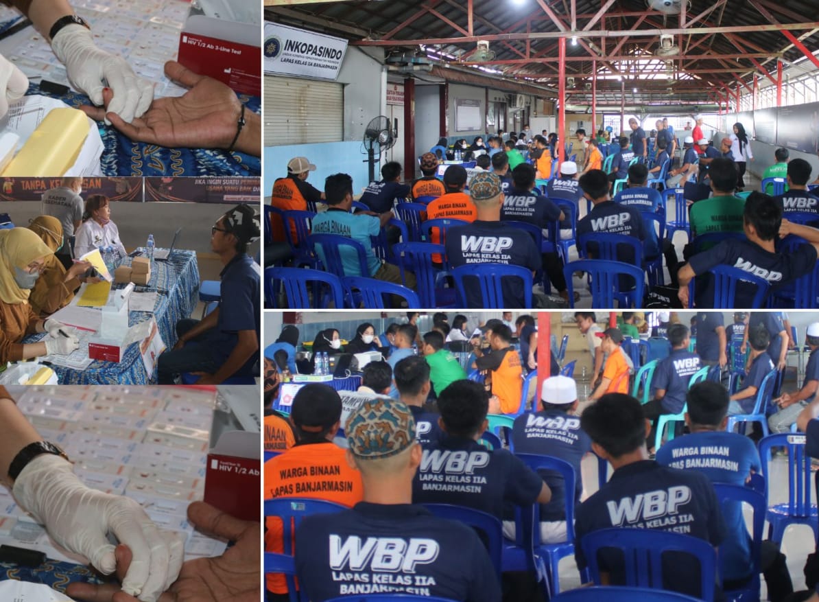 Senin (15/09), Lapas Banjarmasin bekerja sama dengan Puskesmas Pelambuan melaksanakan skrining HIV bagi Warga Binaan Pemasyarakatan (WBP) sebagai upaya menjaga kesehatan mereka.