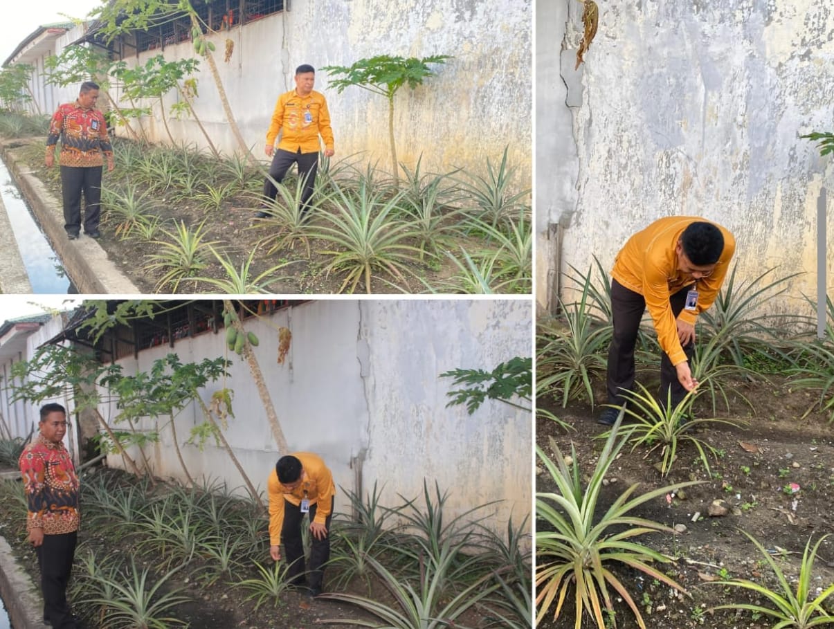 Kasubag TU Dan Kalapas Banjarmasin Evaluasi Perkebunan Nanas Warga Binaan