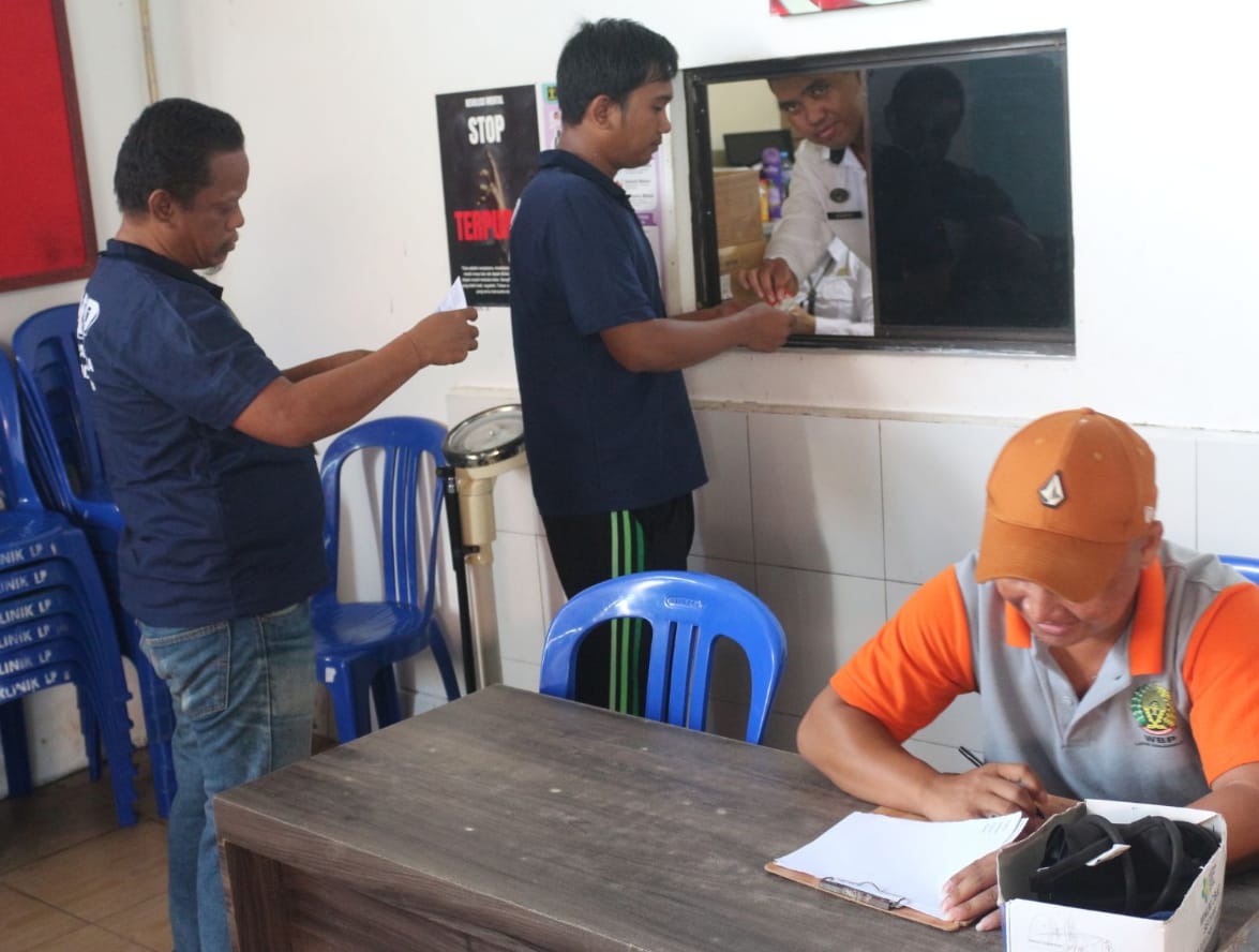 Pemeriksaan dilakukan dengan penuh ketelitian dan empati, mulai dari pengecekan kondisi umum hingga konsultasi kesehatan. Kegiatan ini juga melibatkan beberapa WBP yang menjadi Tamping Klinik (Kader Kesehatan), yang turut membantu petugas dalam memberikan pelayanan kepada rekan-rekan mereka yang membutuhkan perawatan.