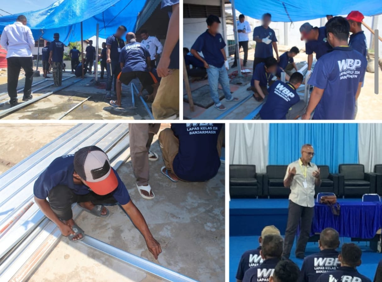 Lembaga Pemasyarakatan (Lapas) Kelas IIA Banjarmasin kembali melaksanakan pembinaan kemandirian bagi Warga Binaan Pemasyarakatan (WBP). Kali ini, kegiatan berupa Pelatihan Konstruksi Baja Ringan yang dilaksanakan pada Senin (25/08) di Bengkel Kerja Lapas.