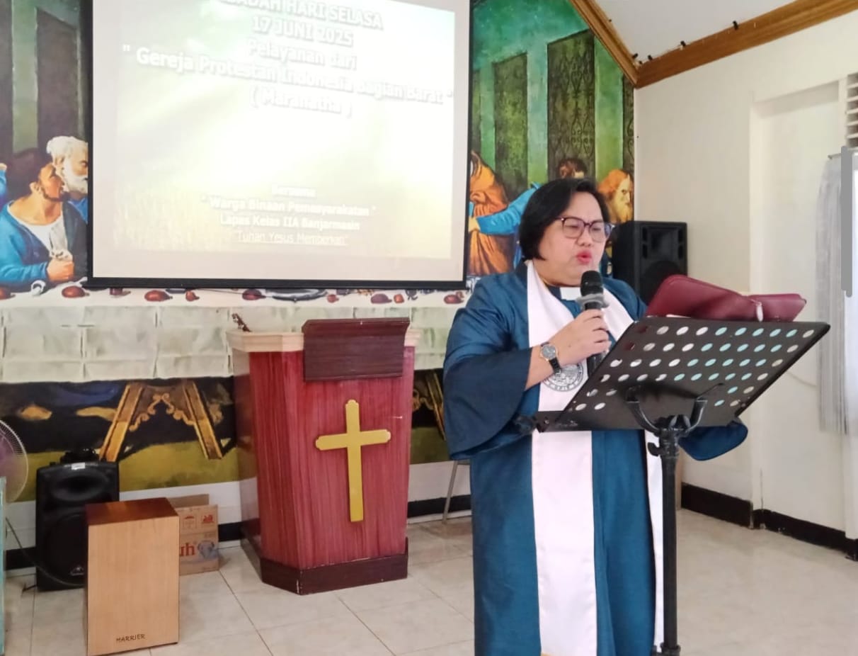 Suasana khusyuk dan penuh kekhidmatan menyelimuti Gereja Oikumene Lapas Kelas IIA Banjarmasin pada Selasa (17/06), saat seluruh jemaat warga binaan pemasyarakatan (WBP) Kristiani mengikuti ibadah rutin pelayanan dari Gereja Protestan di Indonesia bagian Barat (GPIB) Maranatha.