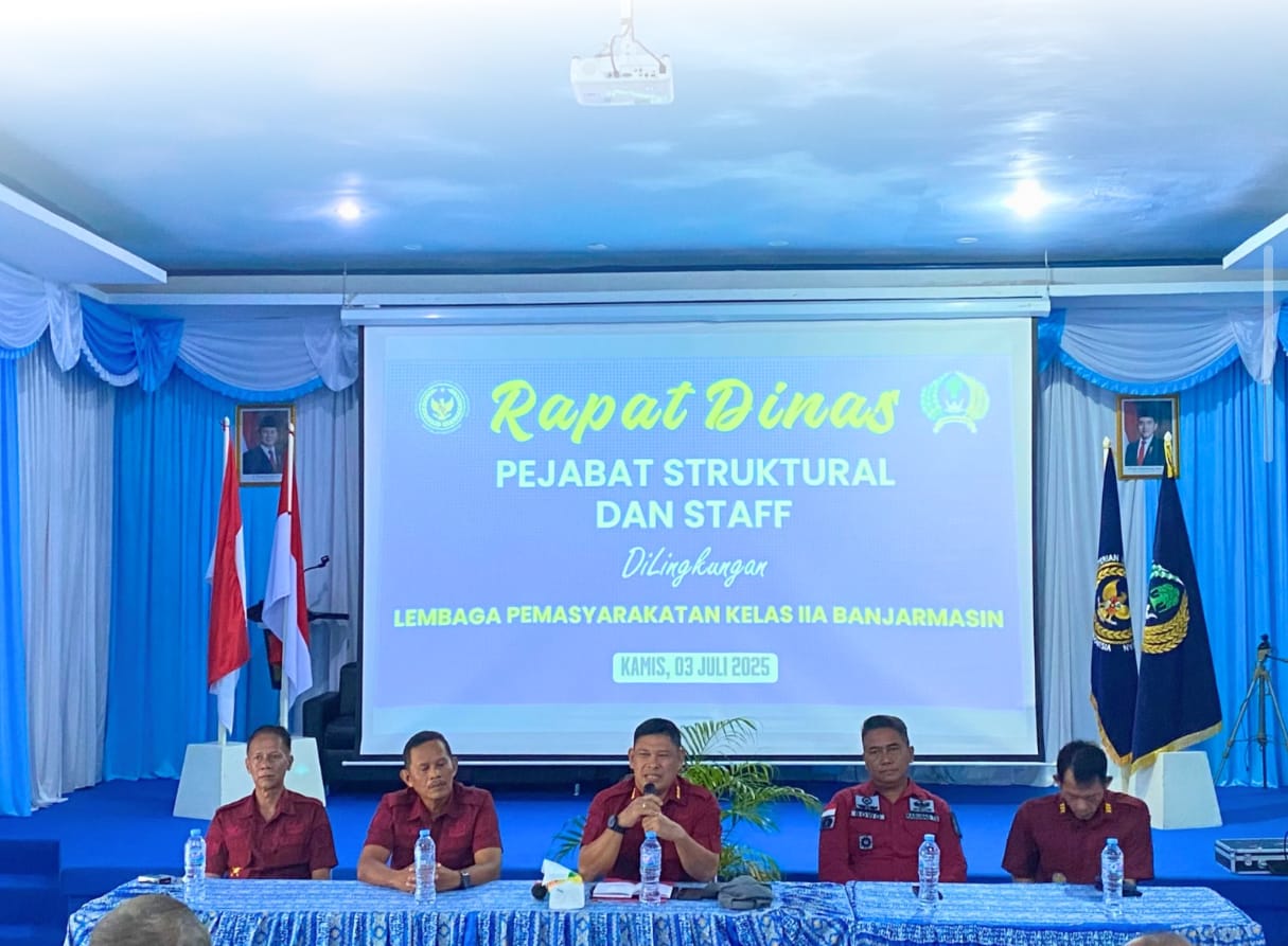 Dalam upaya memperkuat koordinasi dan meningkatkan efektivitas kinerja, Lembaga Pemasyarakatan (Lapas) Kelas IIA Banjarmasin menggelar rapat dinas pada Kamis (03/07), bertempat di aula Lapas Banjarmasin.