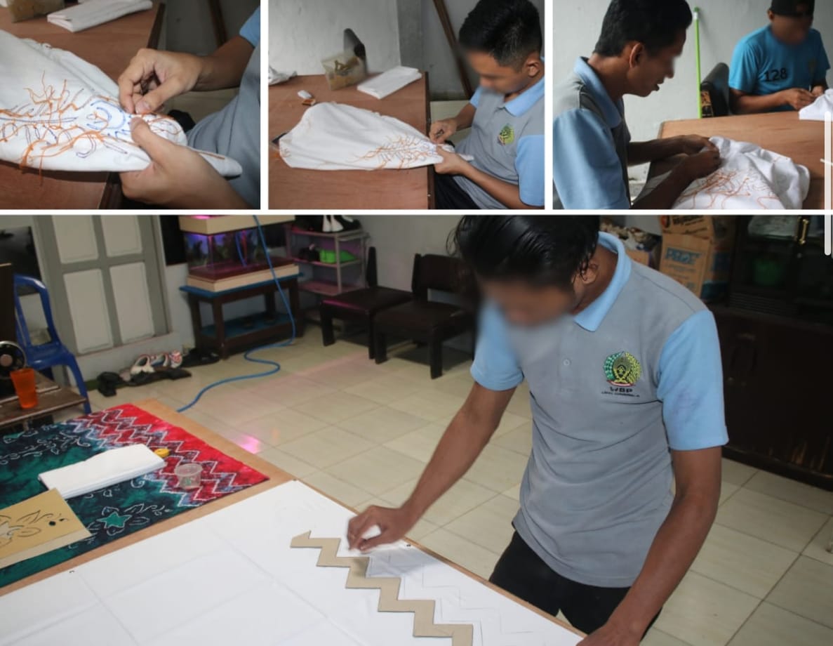 Pada kegiatan kali ini, para warga binaan fokus pada dua tahap penting dalam proses pembuatan kain sasirangan, yakni pembuatan pola dan proses menjulujur. Proses menjulujur sendiri merupakan tahap penyusunan benang mengikuti pola yang telah dibuat sebelumnya, yang membutuhkan ketelitian dan waktu pengerjaan hingga beberapa hari tergantung kompleksitas motif.