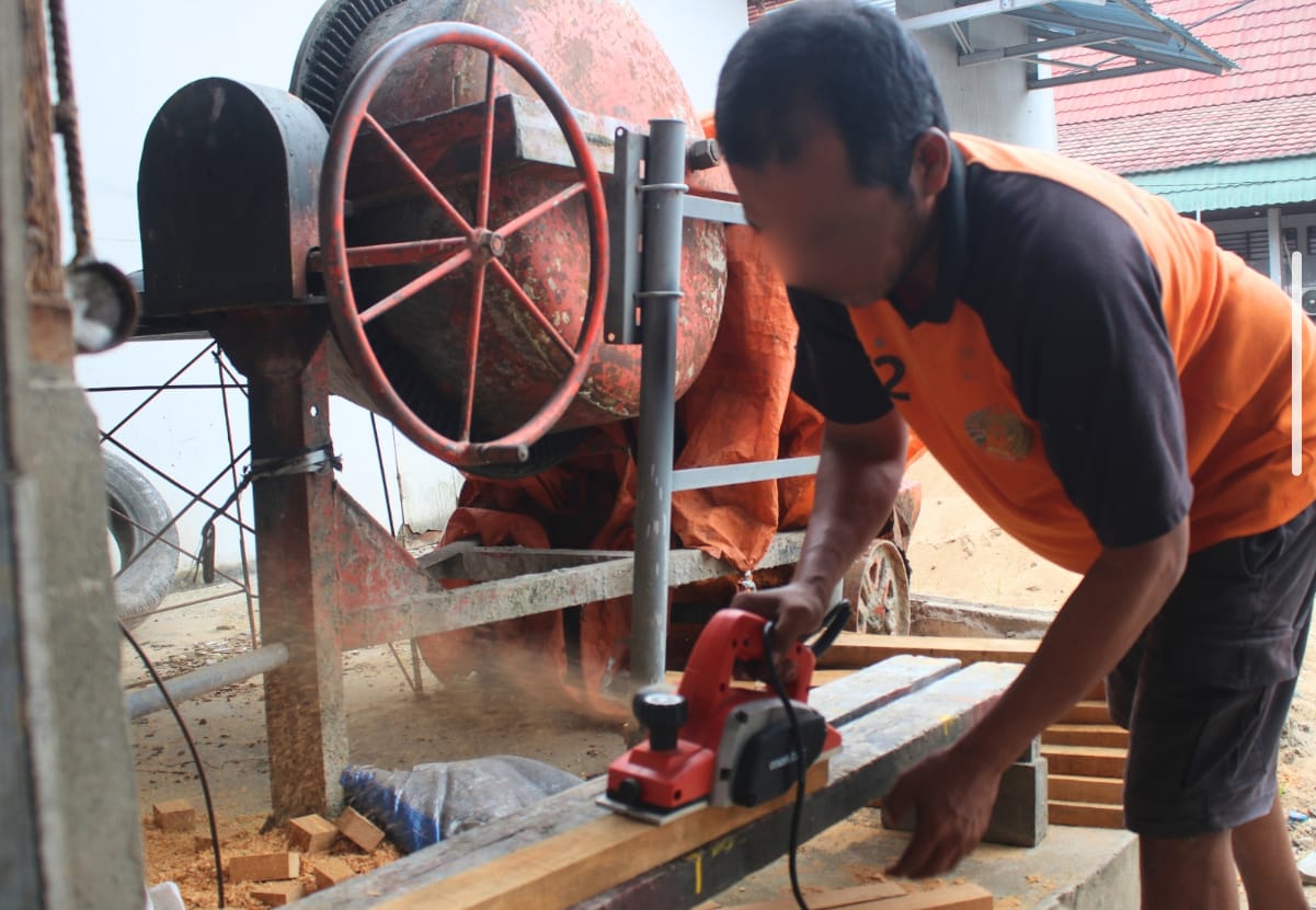 Kegiatan pertukangan ini berlangsung dengan pendampingan dari petugas, yaitu Muttaqin Akbar dan Rian Ramadhan, yang secara rutin mengawasi serta memberi arahan teknis selama proses kerja berlangsung.