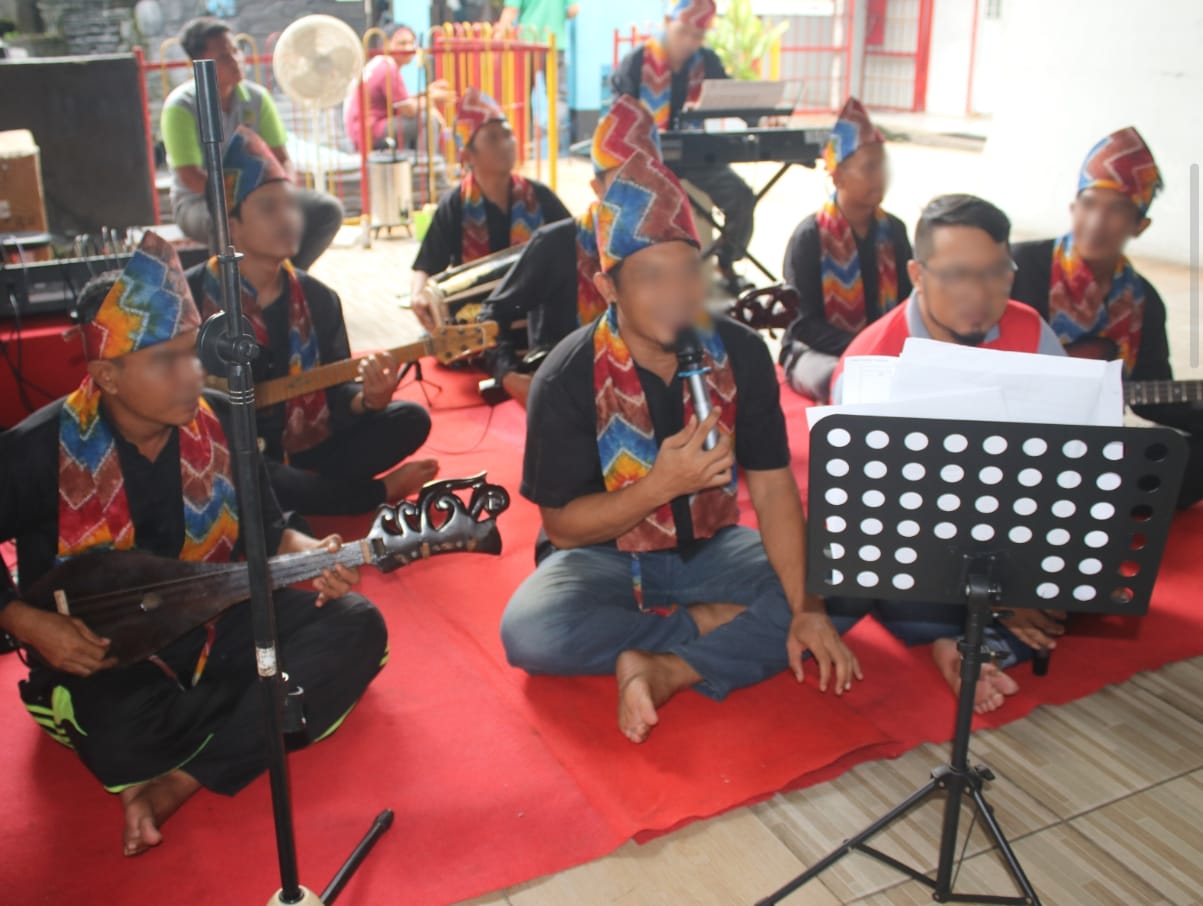 Suasana layanan kunjungan di Lapas Kelas IIA Banjarmasin tampak berbeda pada Sabtu (7/6). Alunan musik Panting yang khas dan ceria mengalun lembut dari ruang kunjungan. Grup Panting Asteda, yang digawangi oleh warga binaan, tampil menghibur keluarga yang datang menjenguk sanak saudara mereka di dalam lapas.