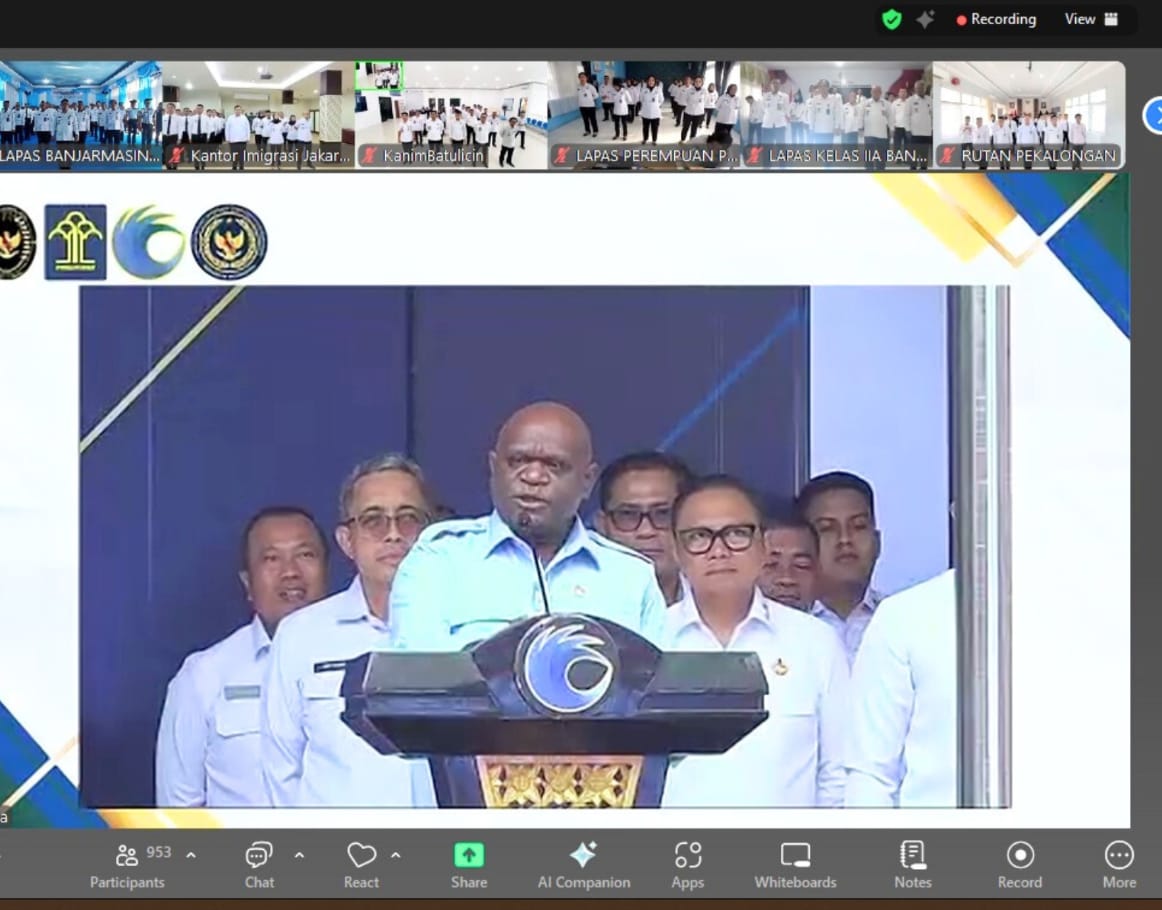 Seluruh jajaran pegawai di lingkungan Kementerian Imigrasi dan Pemasyarakatan RI (Kemenimipas RI), termasuk di Lembaga Pemasyarakatan (Lapas) Kelas IIA Banjarmasin, mengikuti kegiatan Apel Bersama secara daring pada Senin (14/07). Kegiatan ini dilaksanakan serentak oleh unit pelaksana teknis (UPT) dan kantor wilayah di seluruh Indonesia di bawah koordinasi Kementerian Koordinator Bidang Hukum, HAM, Imigrasi dan Pemasyarakatan.