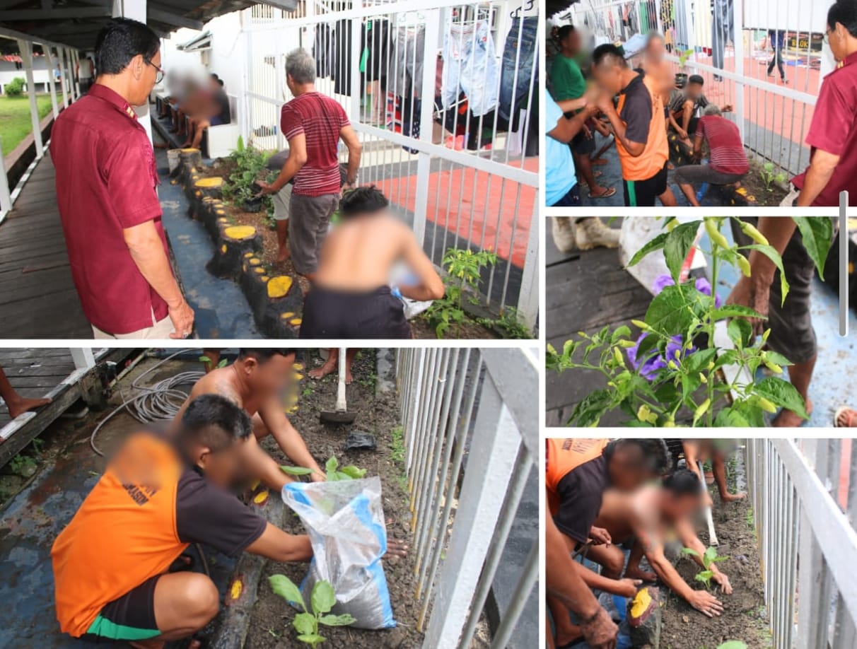 Tanaman yang ditanam meliputi 7 pohon cabai, 2 pohon kedondong, terong, dan stroberi. Selain memperindah lingkungan blok, kegiatan ini juga menjadi bagian dari upaya pembinaan kemandirian dan keterampilan bercocok tanam bagi warga binaan.