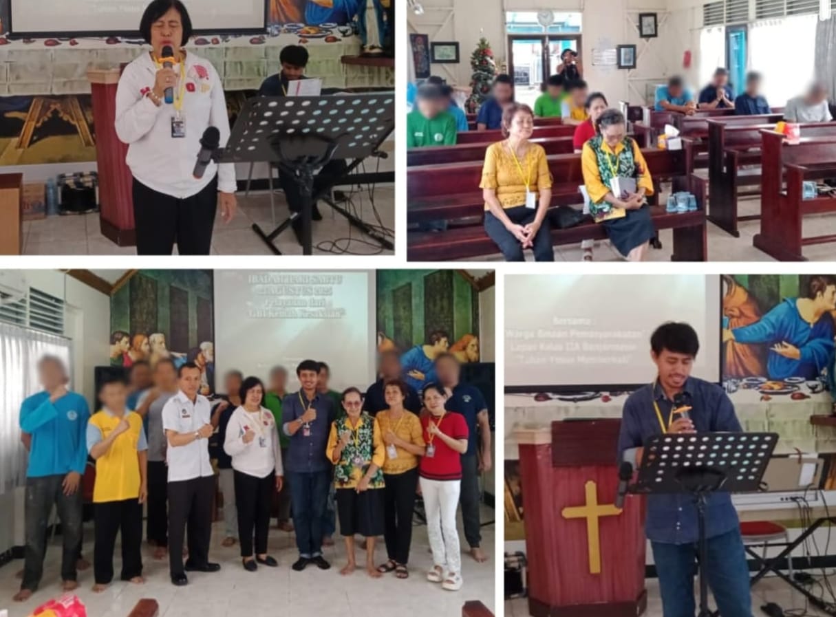 Lembaga Pemasyarakatan (Lapas) Kelas IIA Banjarmasin kembali menggelar Ibadah Rutin Bulanan Pelayanan dari Gereja GBI Kemah Kesaksian, Sabtu (23/08), bertempat di Gereja Oikumene Lapas Banjarmasin.
