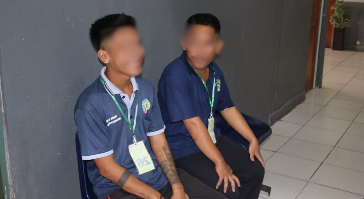 Dua Warga Binaan Pemasyarakatan (WBP) Lembaga Pemasyarakatan (Lapas) Kelas IIA Banjarmasin tampak duduk di depan ruang pelayanan pada Sabtu (8/11). Mereka tengah menunggu giliran untuk memperoleh informasi terkait masa hukumannya, atau yang biasa disebut Ekspirasi Masa Pidana.