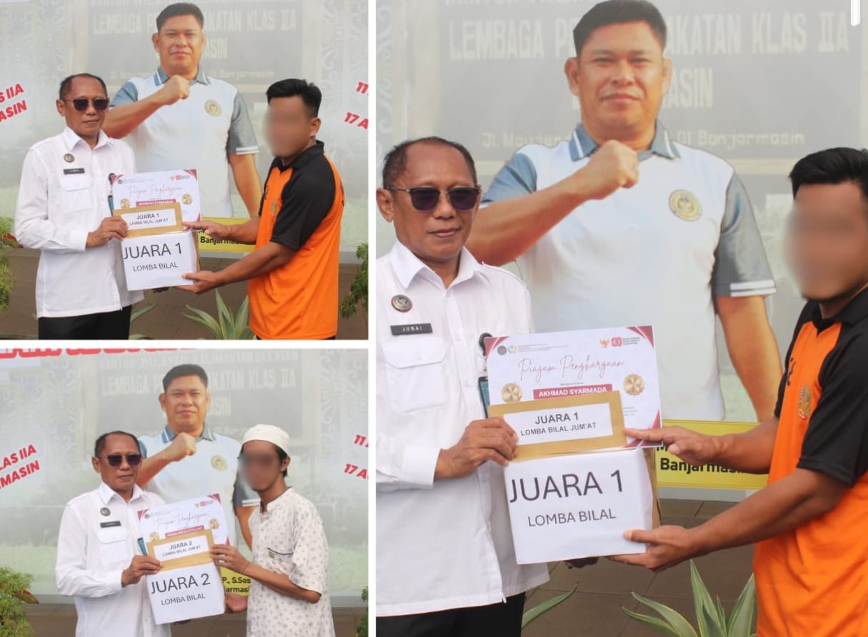 Suasana khidmat menyelimuti Lembaga Pemasyarakatan (Lapas) Kelas IIA Banjarmasin pada Selasa (19/08) pagi saat Kasubsi Bimbingan Kemasyarakatan dan Perawatan (Bimkemaswat), M. Junaidi, menyerahkan piagam penghargaan kepada pemenang lomba kategori keagamaan bidang Azan (Bilal Jum’at) dalam rangka Pekan Lomba Kemerdekaan ke-80 Republik Indonesia.