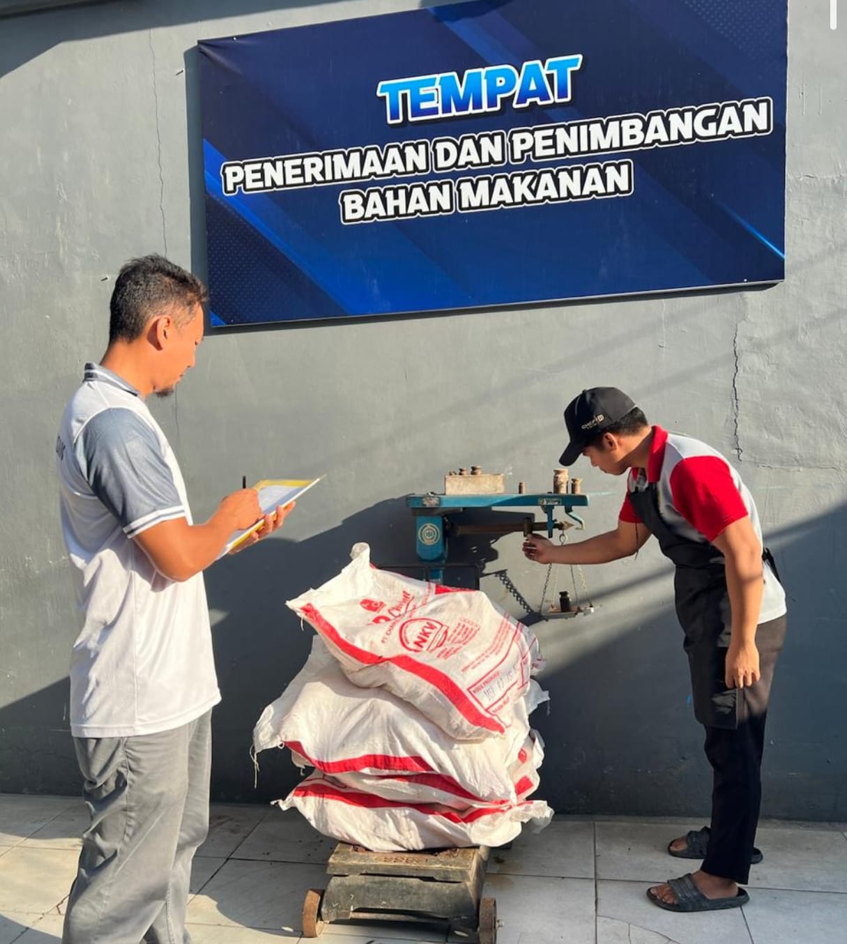 Pemeriksaan bahan makanan hari ini dilakukan oleh Dana Wardana, selaku petugas dapur yang bertanggung jawab dalam penerimaan dan pengawasan bahan pangan pada hari ini. Dalam kegiatan tersebut, petugas memeriksa bahan makanan yang diterima dari vendor untuk memastikan apakah sudah sesuai dengan permintaan atau tidak, baik dari segi jumlah, jenis, maupun kualitas bahan.