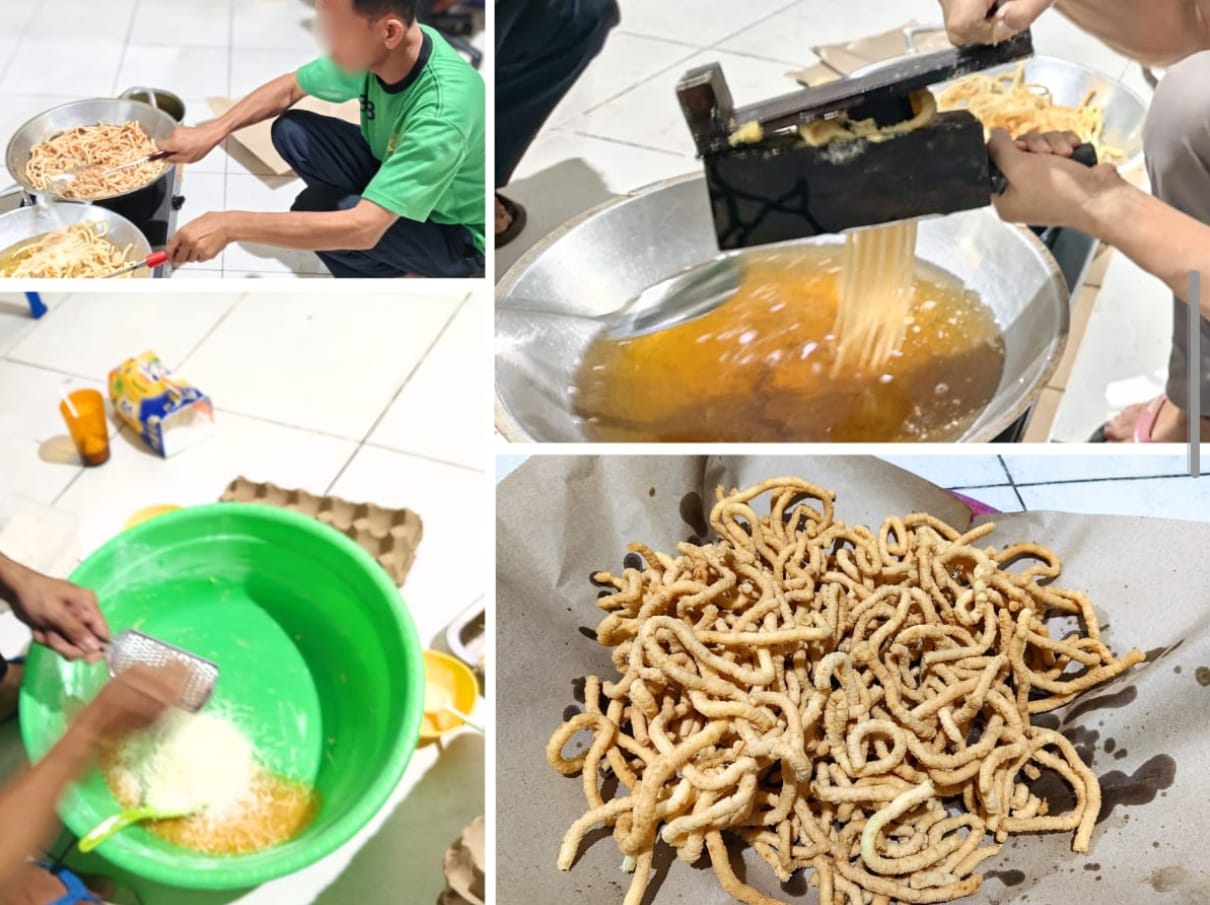 Tak hanya akar pinang, warga binaan juga mendapatkan pelatihan produksi makanan ringan seperti amplang.