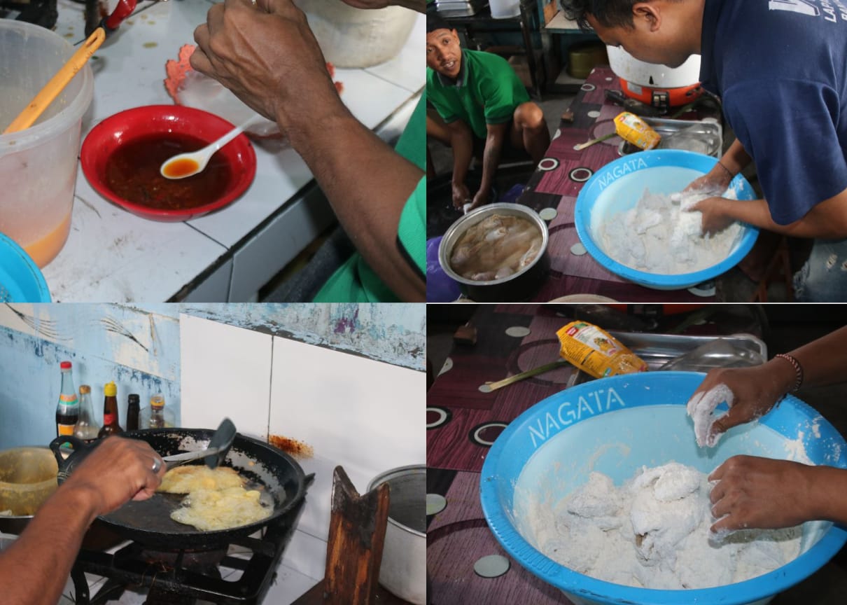 Empat warga binaan pemasyarakatan (WBP) Lembaga Pemasyarakatan (Lapas) Kelas IIA Banjarmasin tampak sibuk di dapur pada Kamis (16/10). Di bawah koordinasi Iril sebagai koordinator tim kuliner, mereka bekerja dengan penuh semangat dalam mengolah berbagai menu hidangan yang menggugah selera.