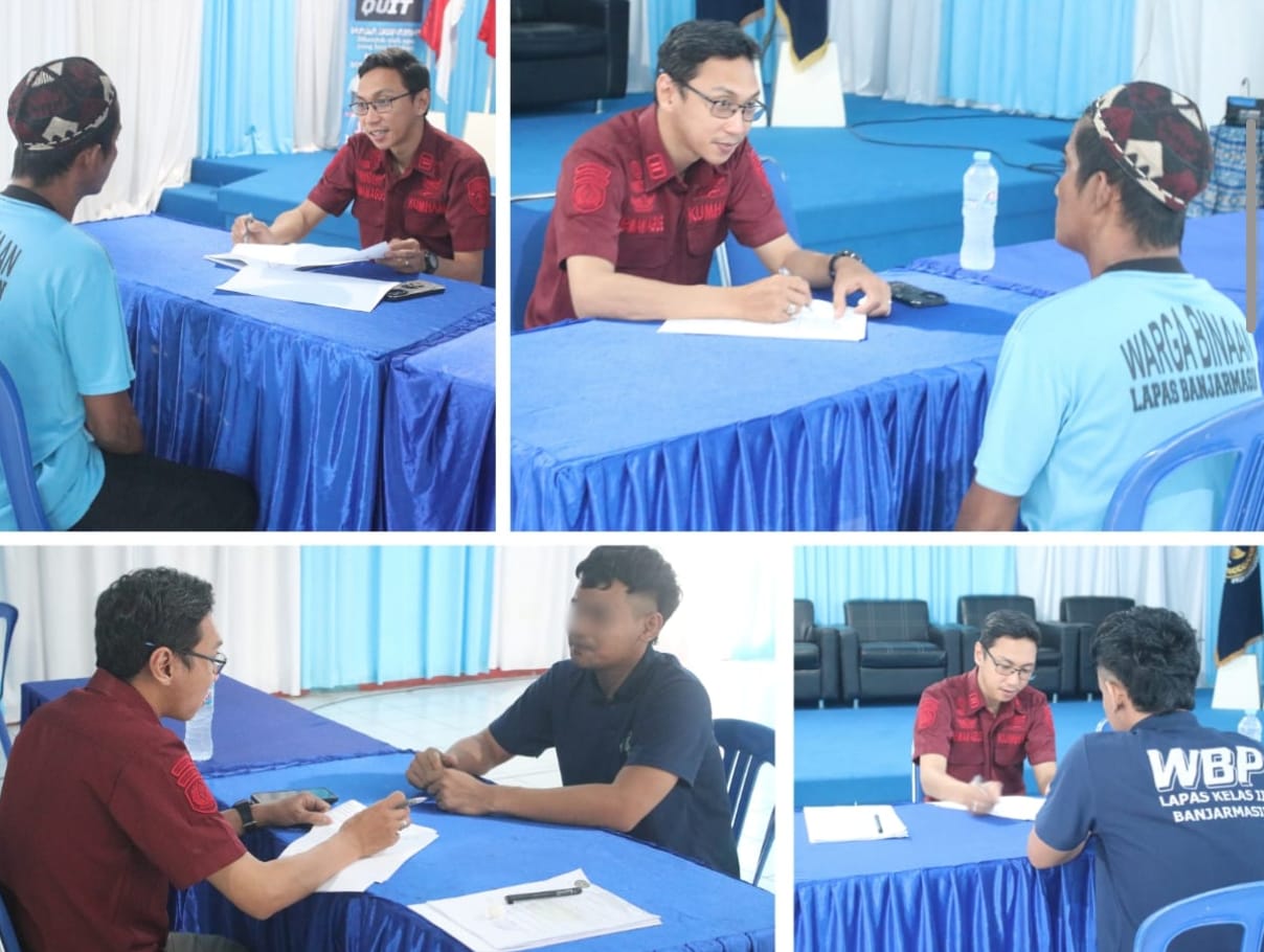 Balai Pemasyarakatan (Bapas) Kelas I Banjarmasin melaksanakan wawancara Litmas (Penelitian Kemasyarakatan) terhadap tiga warga binaan pemasyarakatan (WBP) Lapas Kelas IIA Banjarmasin pada Rabu (27/08).