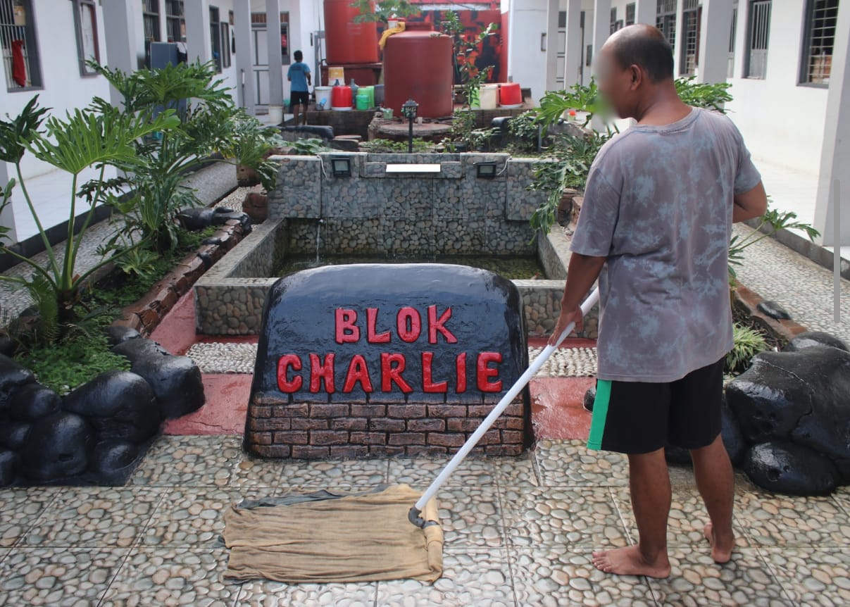 Sebagai bagian dari pembinaan tanggung jawab dan kedisiplinan, tamping kebersihan Blok C (Charlie) Lembaga Pemasyarakatan (Lapas) Kelas IIA Banjarmasin melaksanakan kegiatan rutin kebersihan lingkungan blok, Selasa (08/07).