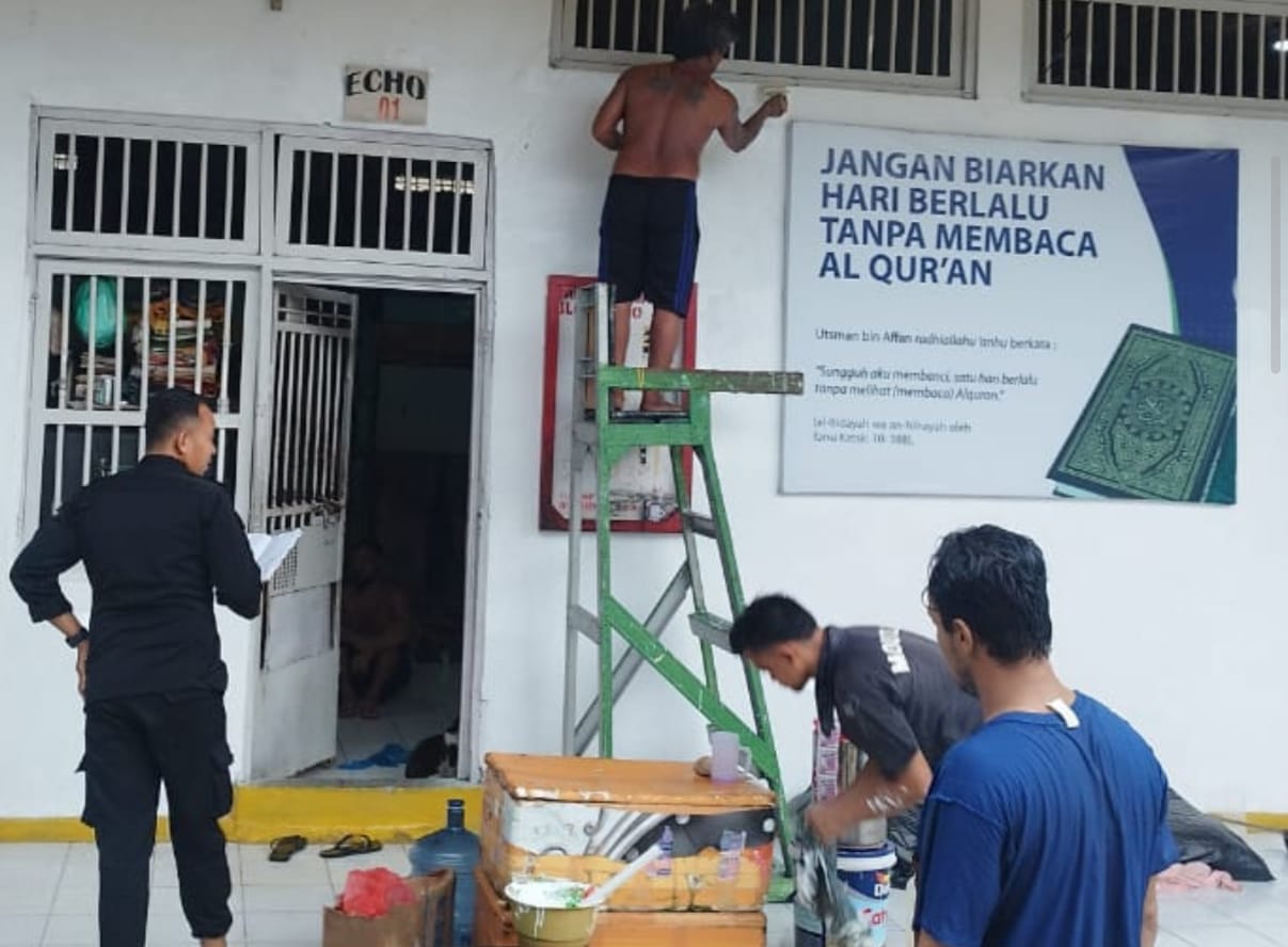 Dari balik tembok tinggi Lapas Kelas IIA Banjarmasin, semangat untuk berubah dan memperbaiki diri terus tumbuh. Salah satunya terlihat dari aksi para tamping kebersihan Blok E yang secara sukarela melakukan pengecatan ulang dinding blok hunian, Minggu, 15 Juni 2025.