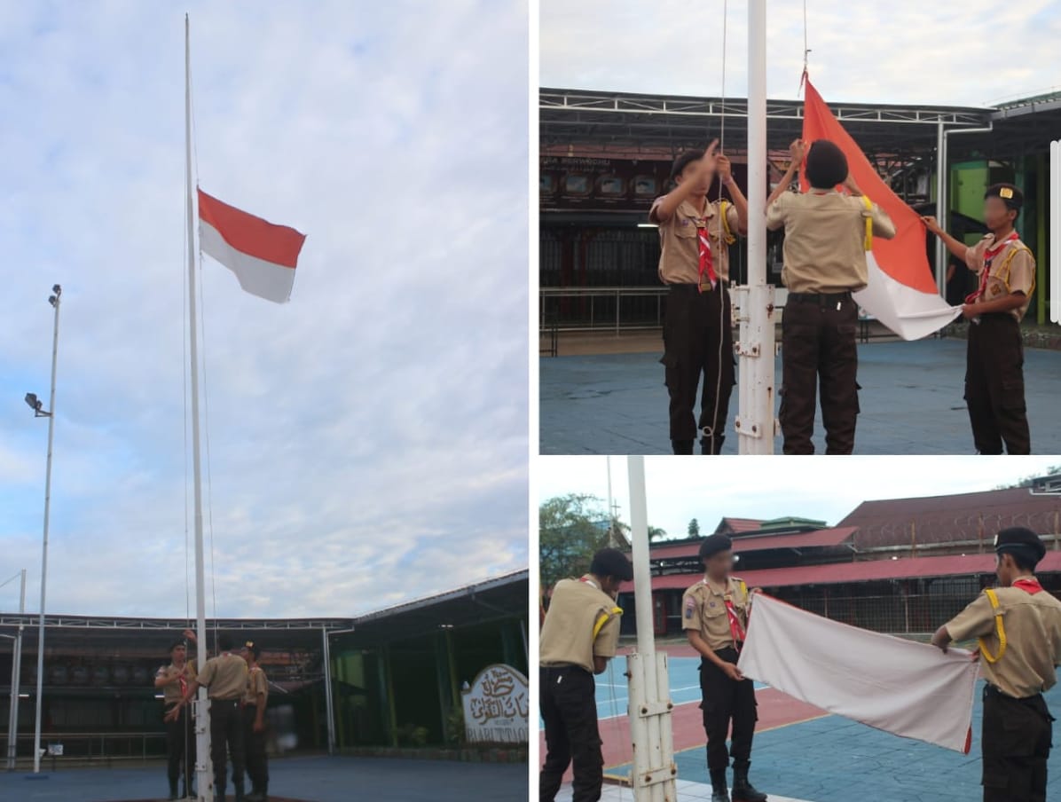 Tanpa ragu, langkah mereka mantap menuju tiang bendera. Suasana hening, hanya suara komando yang terdengar lantang. Perlahan, Sang Merah Putih diturunkan penuh kehormatan. Upacara sederhana itu bukan hanya rutinitas, tetapi juga bentuk pembentukan kedisiplinan, nasionalisme, dan tanggung jawab.