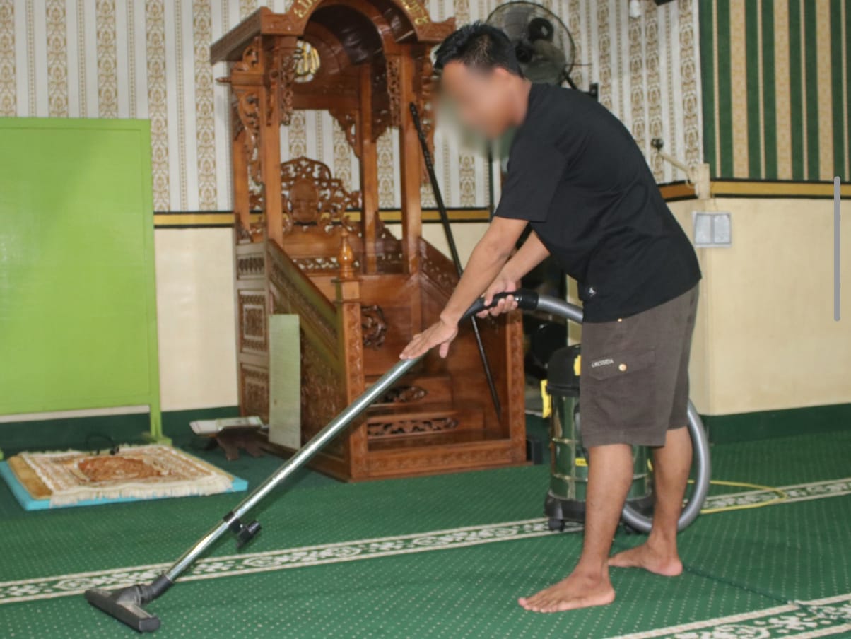 Kegiatan yang dibimbing langsung oleh petugas pembina Salman Farsi ini meliputi penyapuan lantai, pembersihan karpet, pengelapan kaca, merapikan rak Al-Qur’an, serta membersihkan area sekitar masjid agar tetap bersih dan nyaman digunakan untuk beribadah.