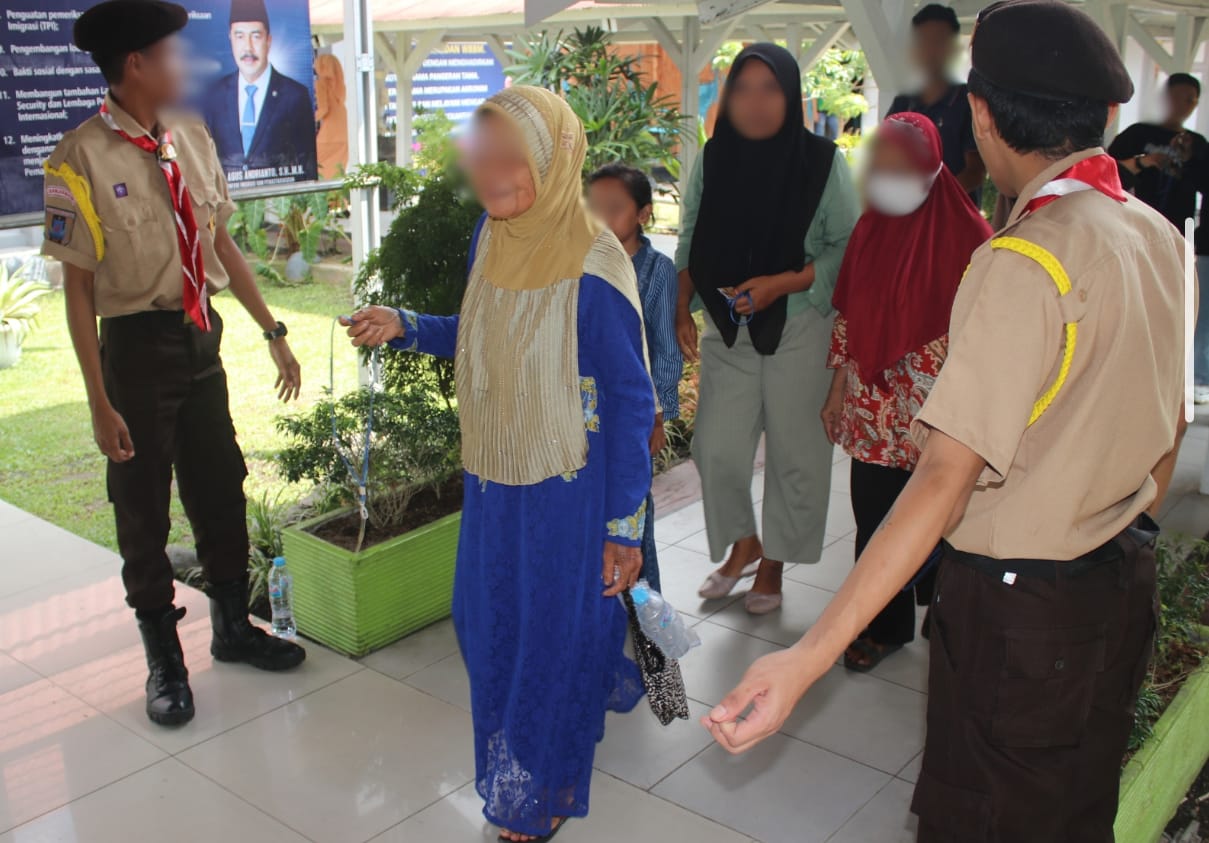 Sejumlah warga binaan yang tergabung dalam Pramuka Lapas Kelas IIA Banjarmasin turut berperan aktif dalam memberikan pelayanan kunjungan kepada keluarga warga binaan, Sabtu (12/07). Dengan mengenakan seragam Pramuka, mereka membantu mengarahkan pengunjung dengan sikap sopan, ramah, dan humanis.