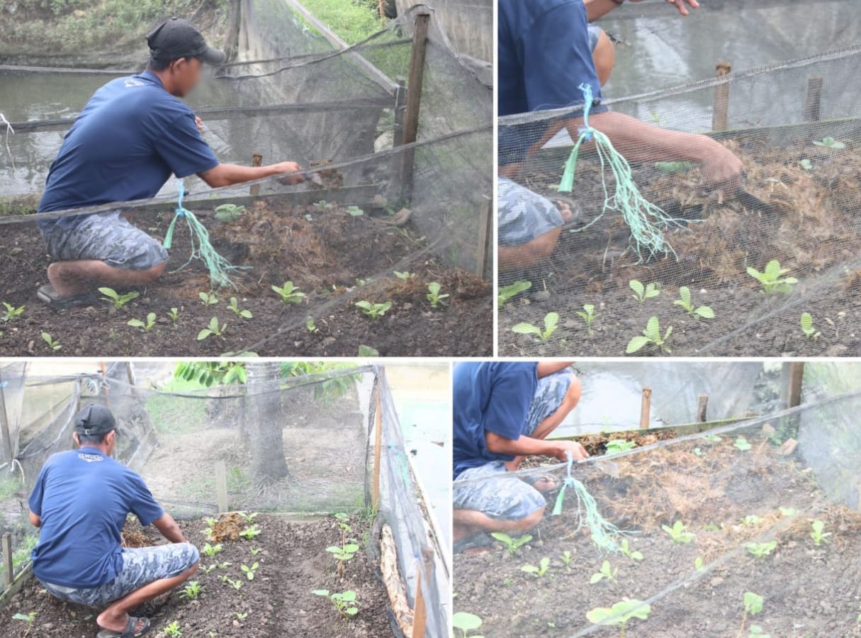 Dalam kegiatan perawatan ini, Iyus memulai dengan menaruh pupuk organik pada lahan yang telah disiapkan agar tanaman sawi dapat tumbuh subur. Kegiatan menanam sayuran ini menjadi salah satu bentuk pembinaan yang rutin dilakukan untuk memberikan bekal keterampilan pertanian bagi WBP.